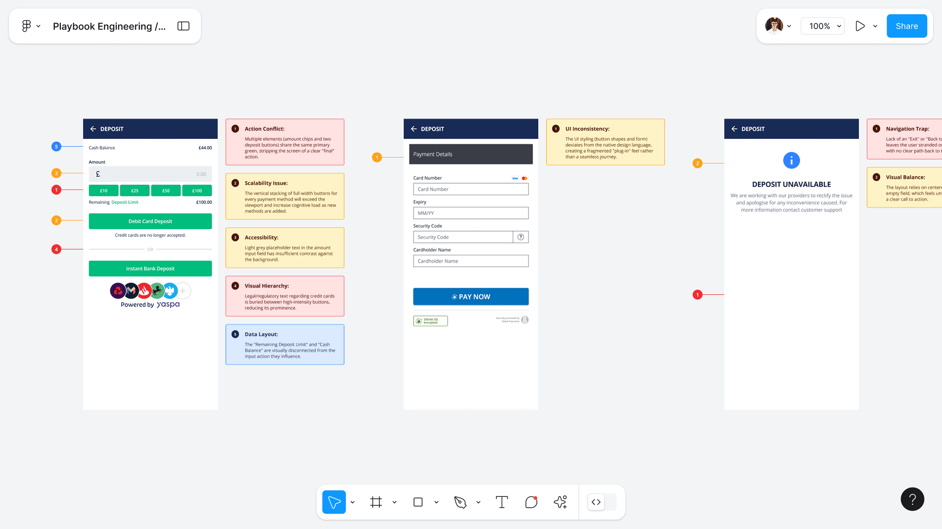 To ensure the new flow felt intuitive, I leant on Jakob’s Law, benchmarking the wireframes against industry leaders to meet existing user expectations. By putting the payment method choice into its own view, I cleared the main deposit screen of clutter. This architecture was a strategic move to handle a technical limitation: while we control the deposit flow, the actual processing screens for payment methods are handled by a third-party iFrame. This setup ensures a seamless handoff while keeping our core UI consistent.