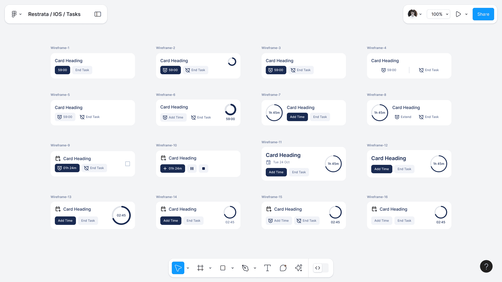 My primary focus was the iteration of the task cards. Drawing inspiration from my research findings, I used rapid wireframing to explore various layouts and hierarchies. By isolating the card as a micro-ecosystem, I ensured the structure remained consistent while the functional utility adapted to the task's lifecycle.